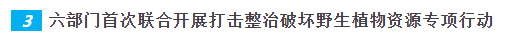 2020年7月30日,打擊野生動植物非法貿易部際聯席會議第三次會議在北京召開,國家林業和草原局、農業農村部、中央政法委、公安部、市場監管總局和國家網信辦6部門聯合啟動打擊整治破壞野生植物資源專項行動。通過成立整治行動協調機制、加強野外巡護值守、強化網上違法違規行為治理、集中清理整頓非法經營市場和商戶等措施,嚴厲打擊亂采濫挖野生植物、破壞野生植物生長環境、違法經營利用野生植物等違法犯罪行為。