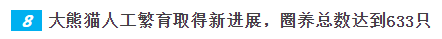 截至2020年12月,我國全年繁育成活大熊貓幼仔44只,大熊貓圈養總數達到633只。9只人工繁育大熊貓放歸自然并成功融入野生種群,圈養大熊貓自然棲息地生存和區域瀕危小種群復壯取得突破。野外引種產下7只帶有野生大熊貓基因的幼仔,圈養大熊貓遺傳種群結構更加優化。