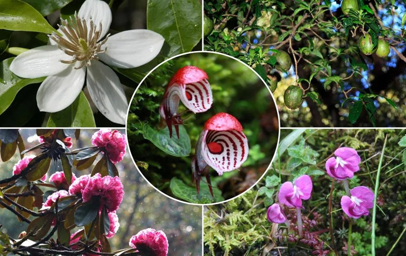 這張拼版照片顯示的是高黎貢山國家級自然保護區的部分野生植物,左上為長蕊木蘭,左下為大樹杜鵑,中間為大理鎧蘭,右上為保山茜,右下為矮馬先蒿(資料照片)。新華社發(高黎貢山國家級自然保護區保山管護局供圖)